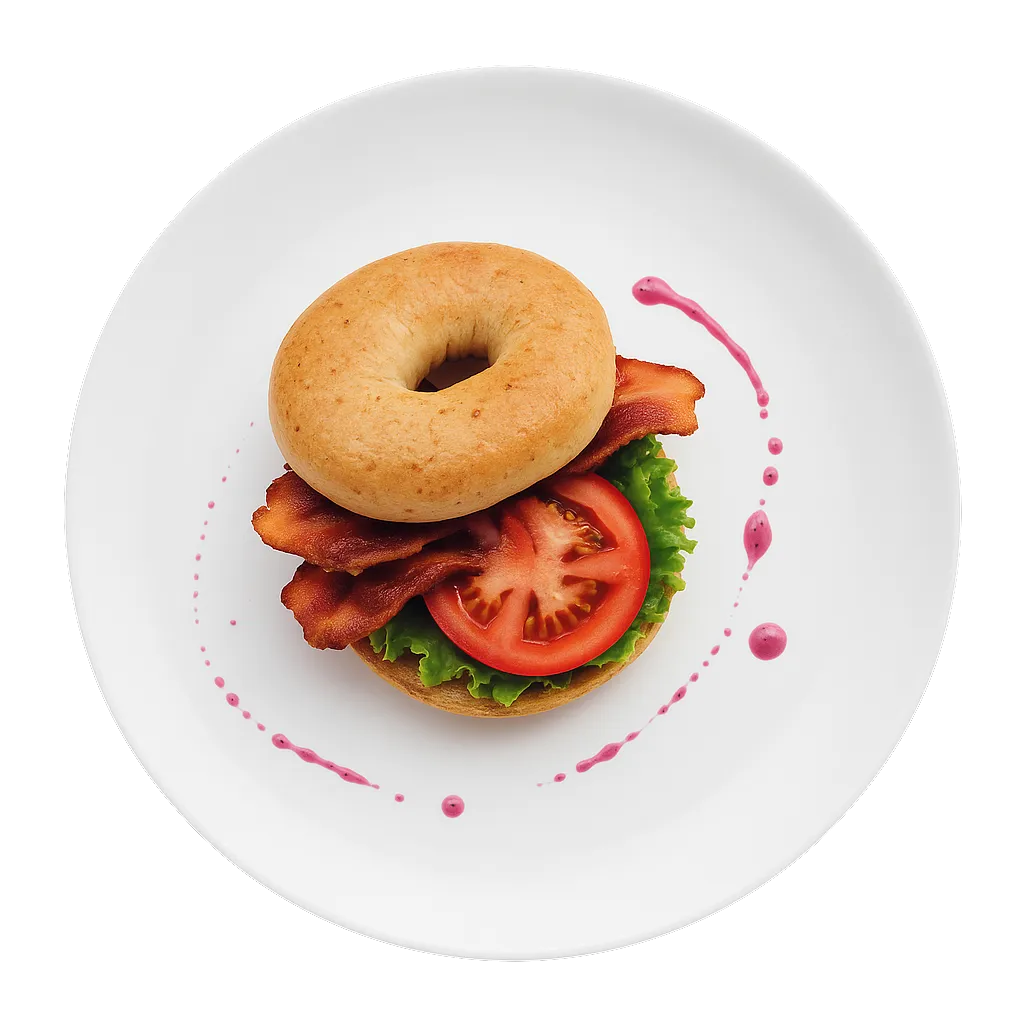 Bacon croustillant, laitue croquante, tomate juteuse et fromage sur bagel grillé.